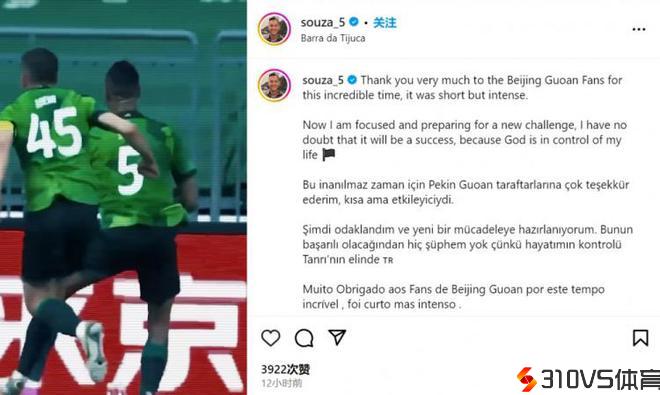 德索萨发文告别国安:渡过了不可思议的光阴,虽持久但充溢热情