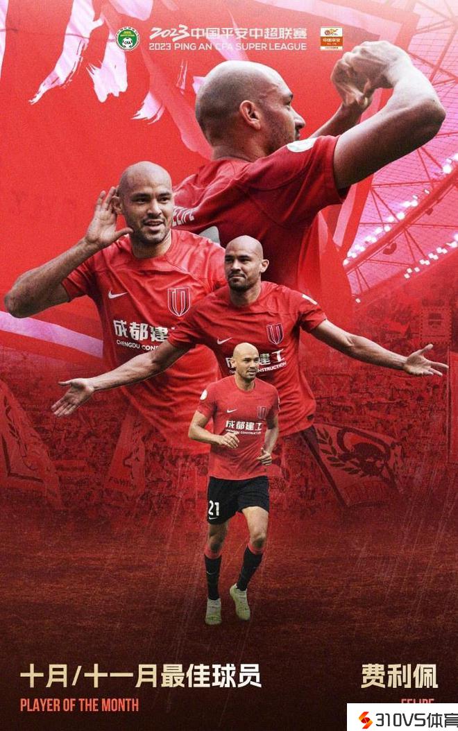 3场竞赛贡献4球2助,蓉城外援费利佩中选中超10月及11月MVP