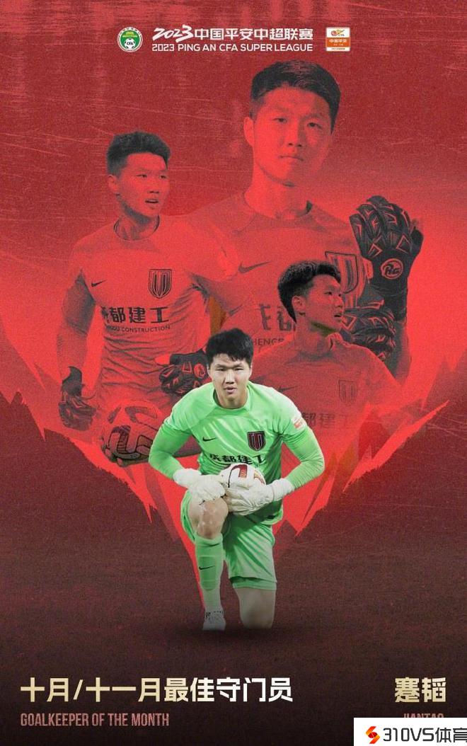 3场竞赛完成8次扑救,蓉城门将蹇韬中选中超月度最佳守门员