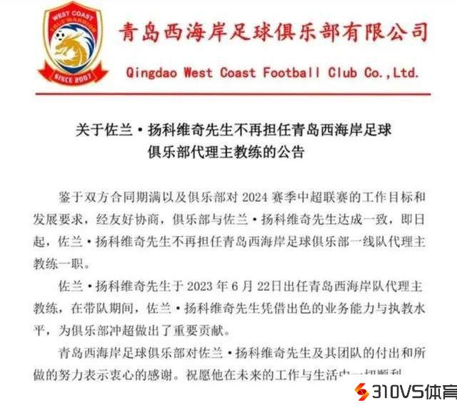 官宣!扬科维奇正式下课,李霄鹏谢晖成抢手人选