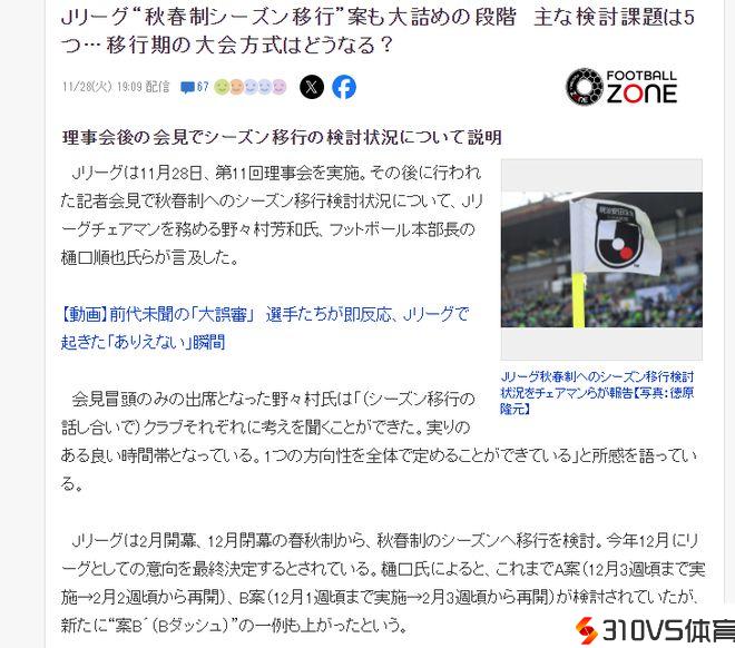 同时,日媒议论最多的,则是过渡期的竞赛效果。目前给出了2个方案,其一是添加一个短期的联赛。也就是2025赛季完毕后,有一个半年的单循环联赛,然后2026年春季末尾新赛季(日媒原文0.5个赛季)。其二就是添加一个长赛季,也就是2025赛季添加到51轮联赛(日媒原文为1.5个赛季。)