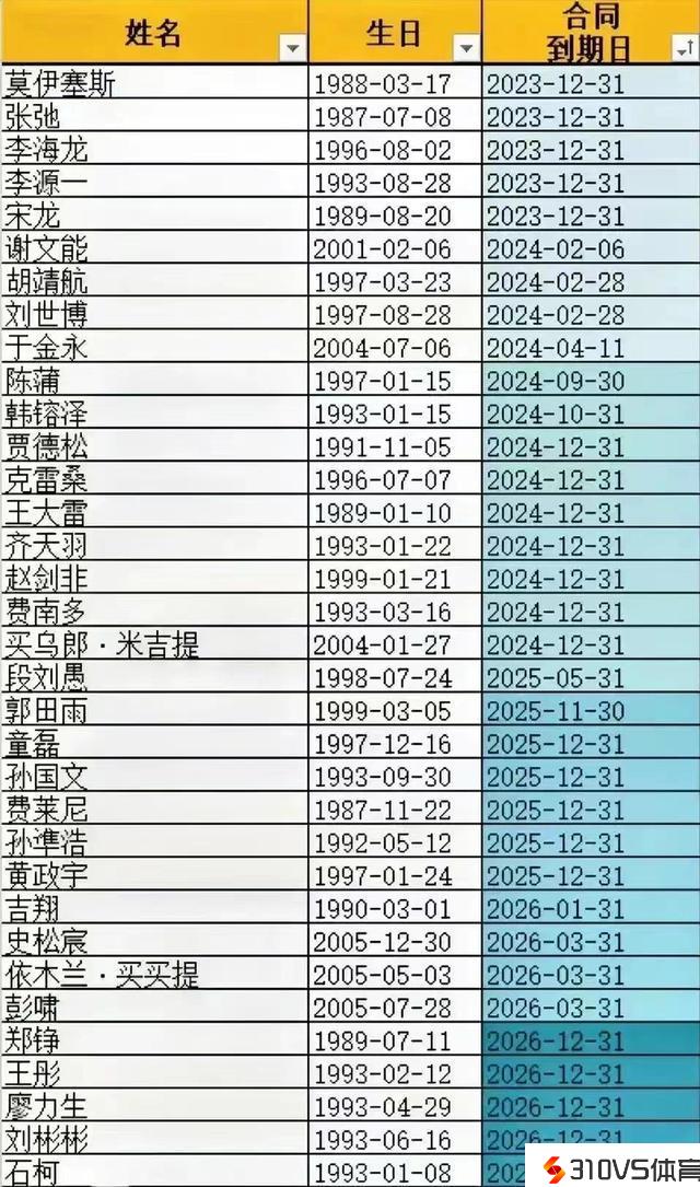 据鲁媒泄漏此次崔康熙曾经初定30人大名单,而且泰山队局部球员通知随后将离队。从德转网了解到的音讯,合同未到期的球员有陈蒲(2024.09),韩荣泽、陈泽仕(2024.10),王大雷、贾德松、费南多、帕托、克雷桑、赵剑非、买乌郎(2024.12),孙国文、黄振宇、童磊、吉翔(2025.12)、穆斯塔帕(2026.02),郑铮、王彤、石珂、刘彬彬、李源一、廖力生(2026.12),这意味着以上21人相对平安,当然不扫除依据球队需求停止外租的能够性。本赛季崔康熙上任之后很少的球员有穆斯塔帕、陈泽仕,此外孙国文、黄振宇虽局部时间运用,但是前期被坚持。此外段刘愚的合同将至2025年5月,吴兴涵合同将至2026年12月。