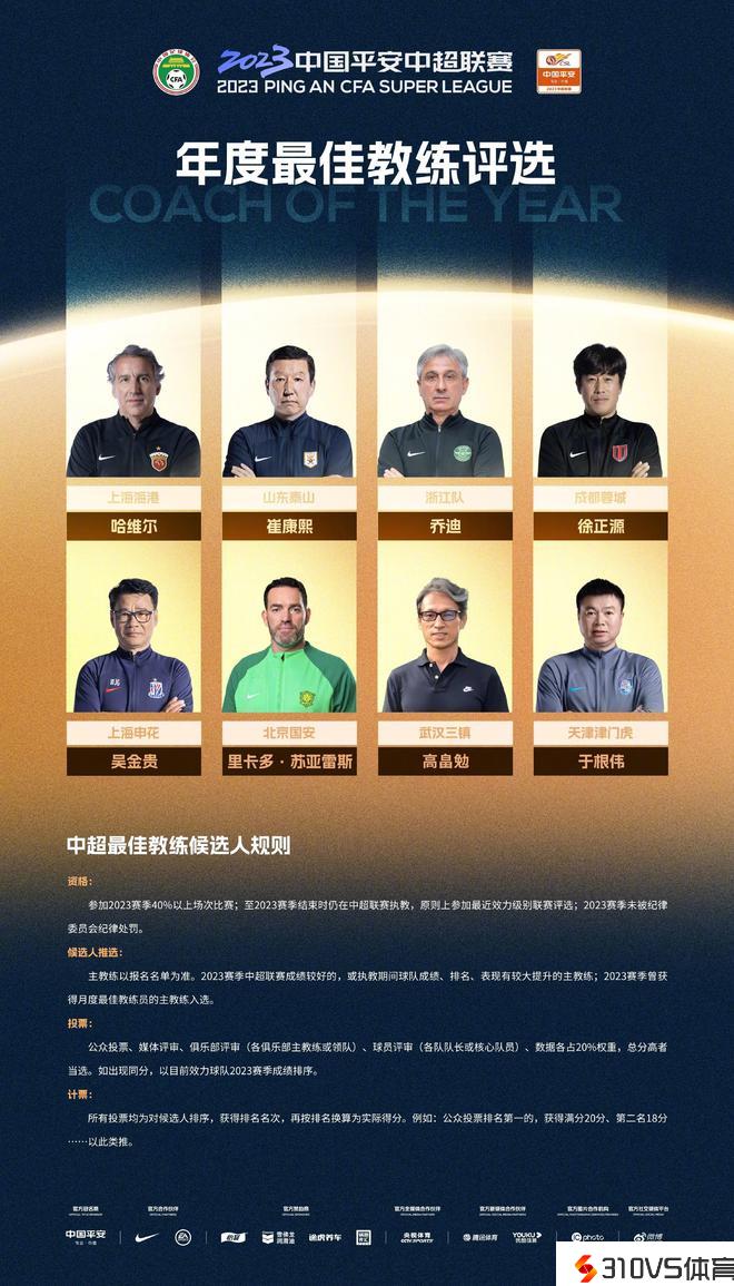 中超年度最佳教练候选:哈维尔、崔康熙、吴金贵、乔迪在列
