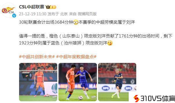 想不到吧?刘洋30轮联赛出场3684分钟中选本赛季中超劳模