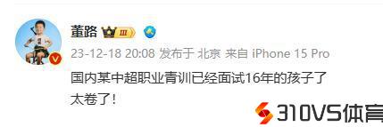 董路:国际某中超职业青训曾经面试16年的孩子了!太卷了!