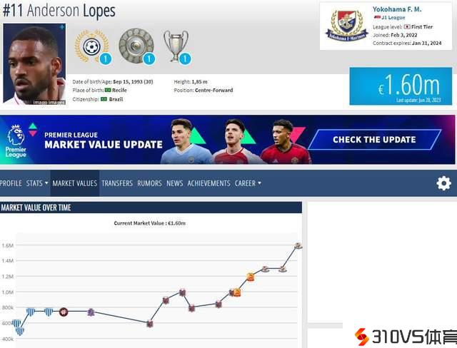 这位34轮J联赛全勤的前锋,在本赛季火力全开,打入22球,与他人共享了J联赛金靴的荣誉。洛佩斯曾在2021赛季效能于中超武汉长江队,并担任过球队队长,时期他在17场竞赛中贡献了7粒进球,展现出了不俗的实力。值得留意的是,洛佩斯与横滨水手队的合同将在2024年1月31日到期,这意味着海港队甚至有能够以自在身签下这位高效的射手。