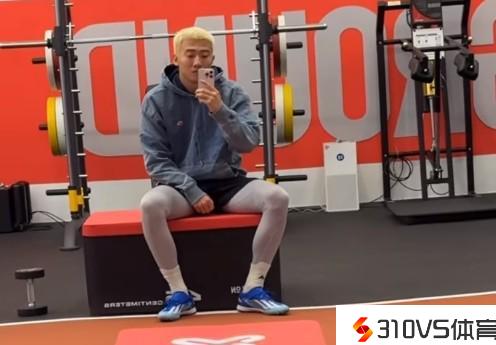 韩佳奇和巴顿在健身室停止恢复训练,韩佳奇一头金发很是抢眼