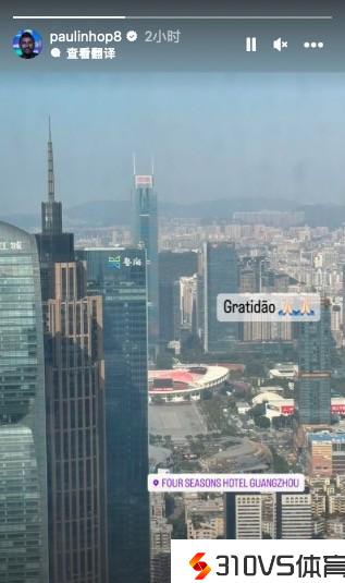 正在广州!保利尼奥从酒店眺望天河体育场