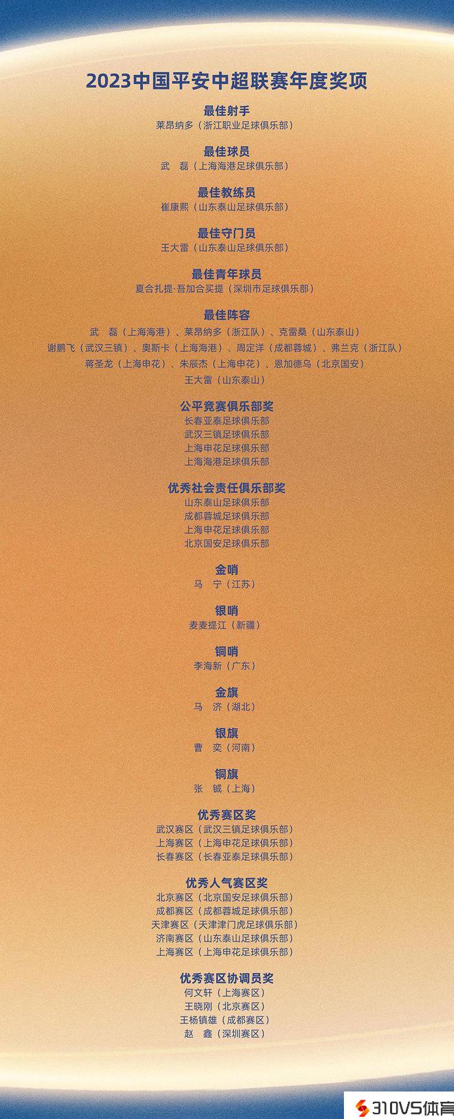 7队11人进最佳阵容,武磊最佳球员,马宁金哨,中超年度大奖揭晓
