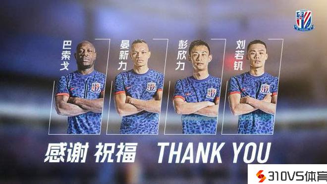 上海申花官方:与巴索戈、晏新力、彭欣力、刘若钒不再续约