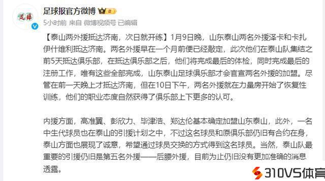 其实泰山队引援的音讯愈加引人关注,1月11日,《足球报》也正式官宣泰山队引援,该媒体表示两位外援泽卡和卡扎伊什维利抵达济南后次日便末尾训练。内援方面,高准翼、彭欣力、毕津浩、郑达伦基本确定加盟山东泰山。这意味着泰山队6大强援曾经确定加盟,前两位将是费莱尼和莫伊塞斯的接班人,而外乡球员高准翼是最佳性价比引援,其他3人是重要轮换球员。