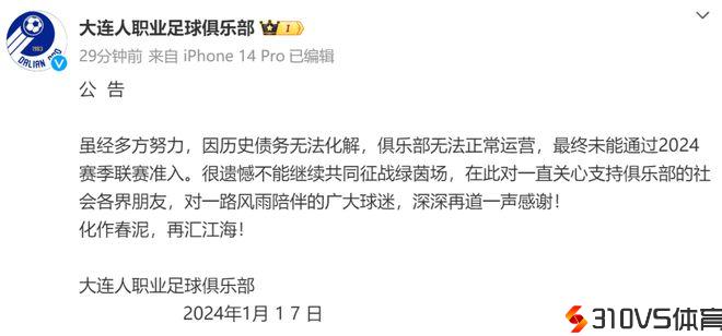 大连人官宣解散,武汉江城闯过准入第一关!