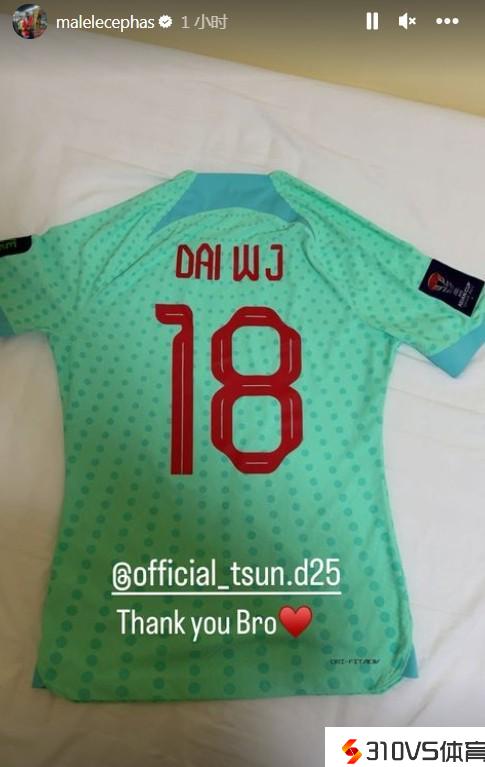 马莱莱展现戴伟浚送他的国足亚洲杯球衣:好兄弟谢谢你