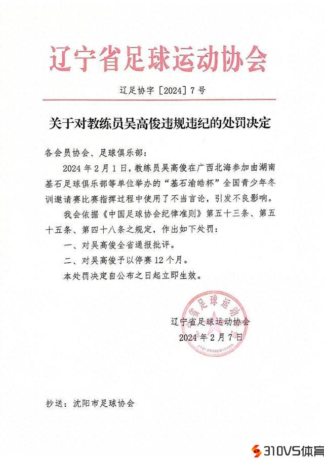 前中超球员指挥孩子踢人 辽宁足协对涉事教练员禁赛1年