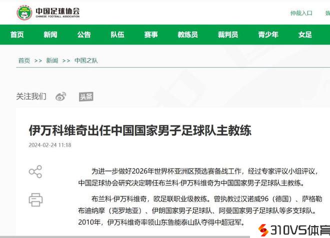 中国足协官方网站在2月24日上午发布音讯,原国足主帅扬科维奇下课,克罗地亚名帅伊万科维奇出任国足新帅。