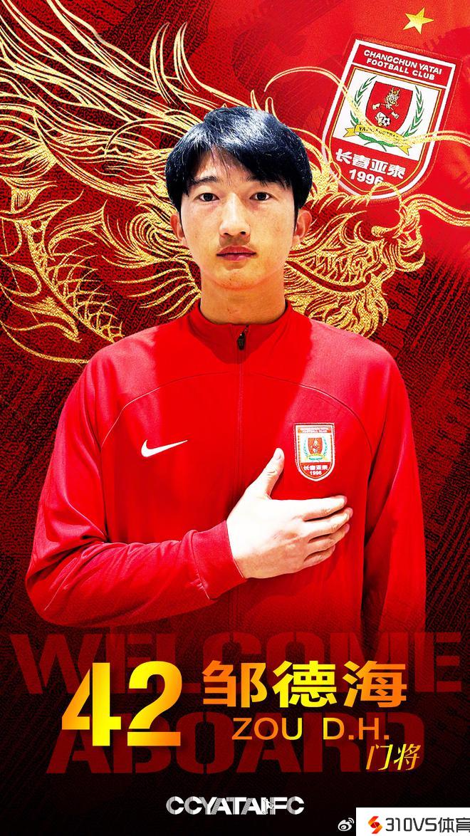亚泰官方:邹德海、李申圆、张华晨、田玉达加盟球队