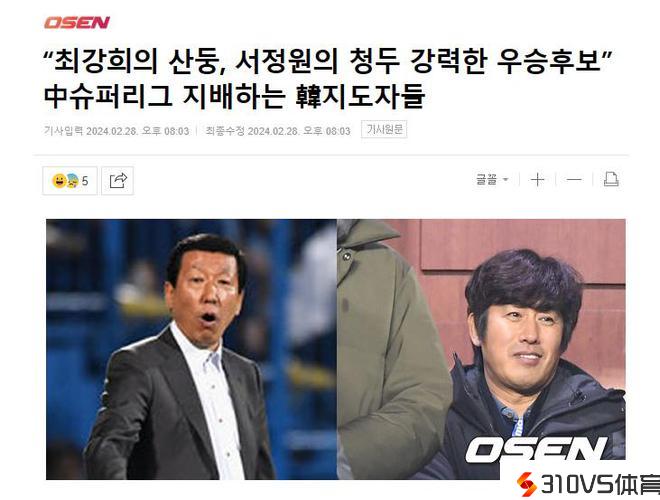 新赛季中超联赛行将打响,韩媒《OSEN》以“崔康熙的山东队、徐正源的成都队都是夺冠抢手”为题,撰文谈到了新赛季中超的状况。