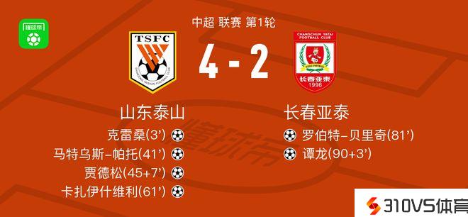 北京时间3月1日山东泰山vs长春亚泰,马特乌斯-帕托失掉全场最高的8.6分,祖伊失掉全场最低的5.7分