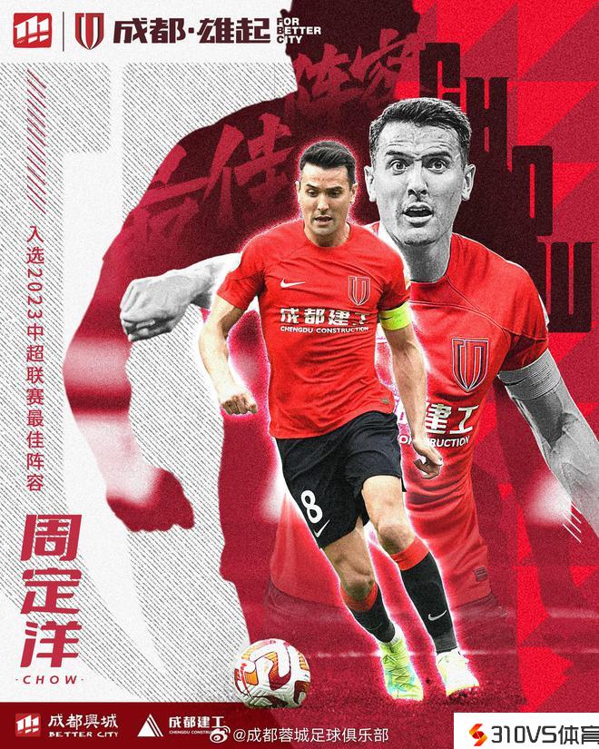 周定洋中选2023中超最佳阵容,成都蓉城主场将举行颁奖仪式