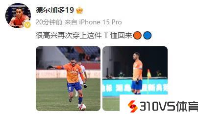 德尔加多社媒发文:很快乐再次穿上这件T恤回来