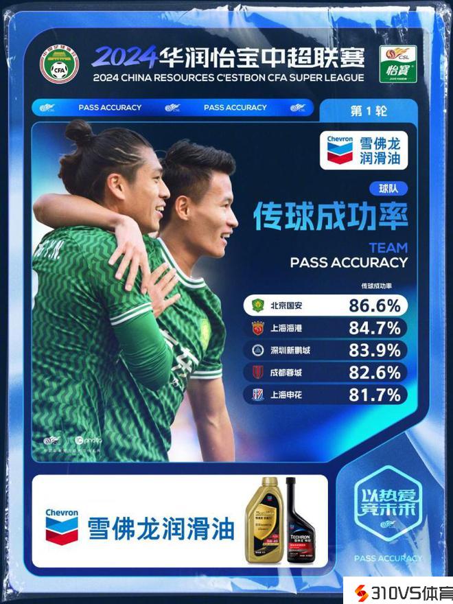 首轮传球成功率:国安86.6%居首,海港和新鹏城分列二三位
