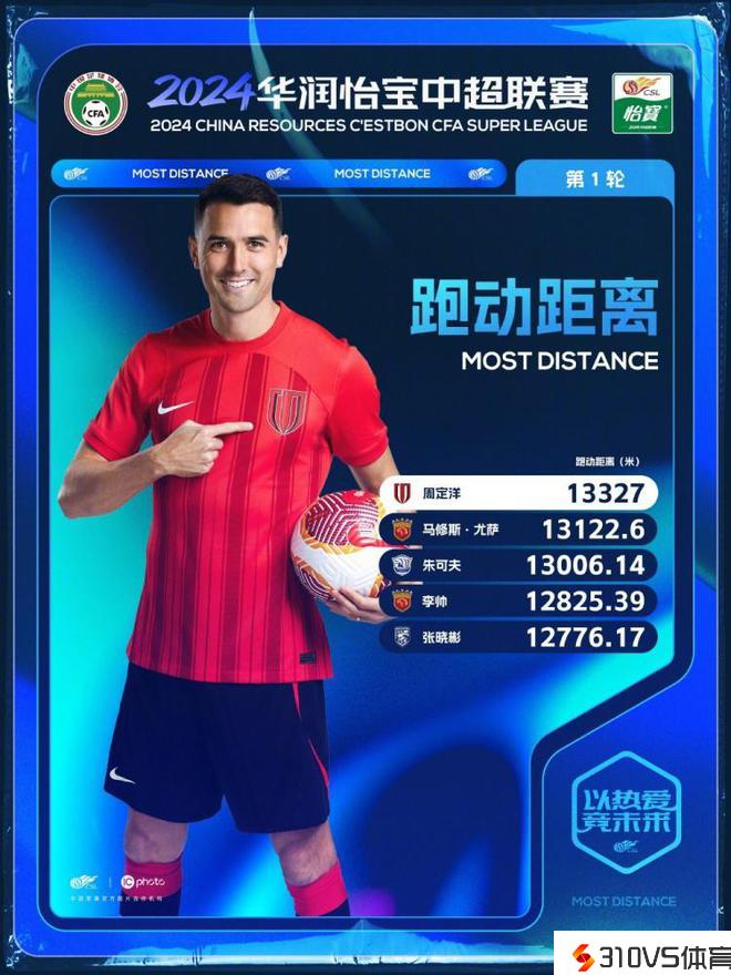 中超官方:周定洋单场跑动13327米,是有该项数据统计以来的新高