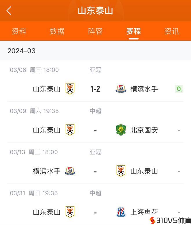 两队赛程:泰山未来一周战国安&横滨;横滨以逸待劳获一周休息