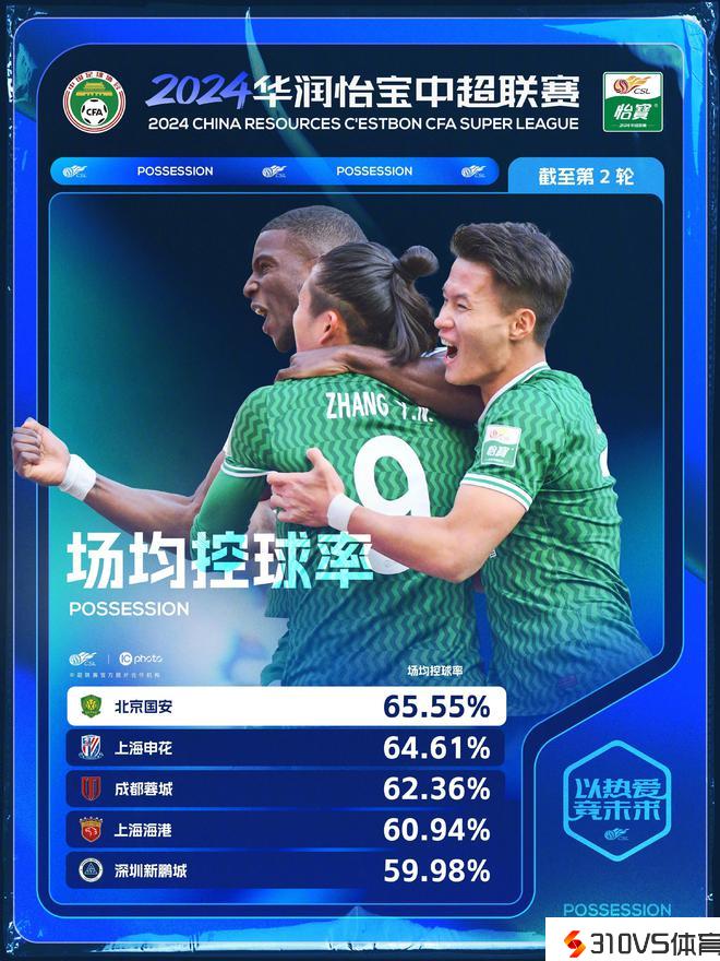 65.55%,国安本赛季中超场均控球率为联赛最高