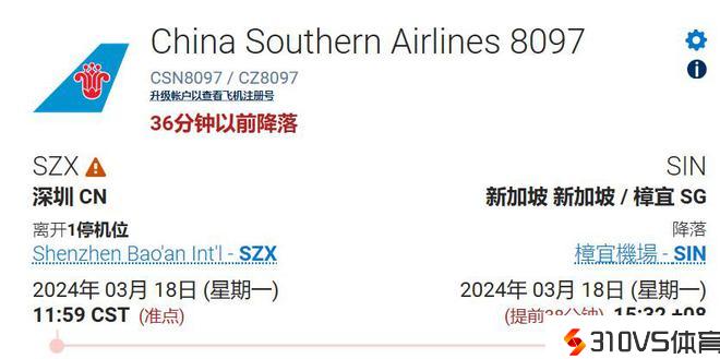 航迹图网站显示,国足乘坐的南航CZ8097航班曾经在半小时前抵达新加坡!
