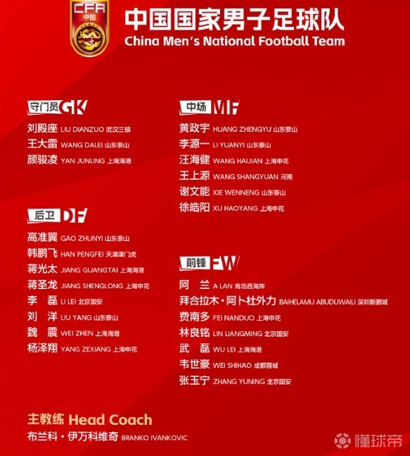 当然,现阶段国足新一期集训名单仍有变动的可能,原因是目前有伤在身的武磊和阿兰能否赶在澳中之战前复出尚无定论。若两人中有人无法满足比赛条件,教练组大概率将在赴澳前对人员做出增补。更何况近两日国脚大户山东泰山队、上海海港队和上海申花队还有亚冠比赛任务,预防更多意外伤病的出现也是不容忽视的问题。