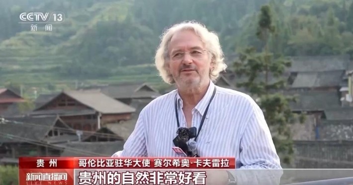 哥伦比亚驻华大使赛尔希奥-卡夫雷拉:“贵州的自然风景非常好看,也非常喜欢贵州人民,大家都非常友善,我在贵州的心情非常好。”