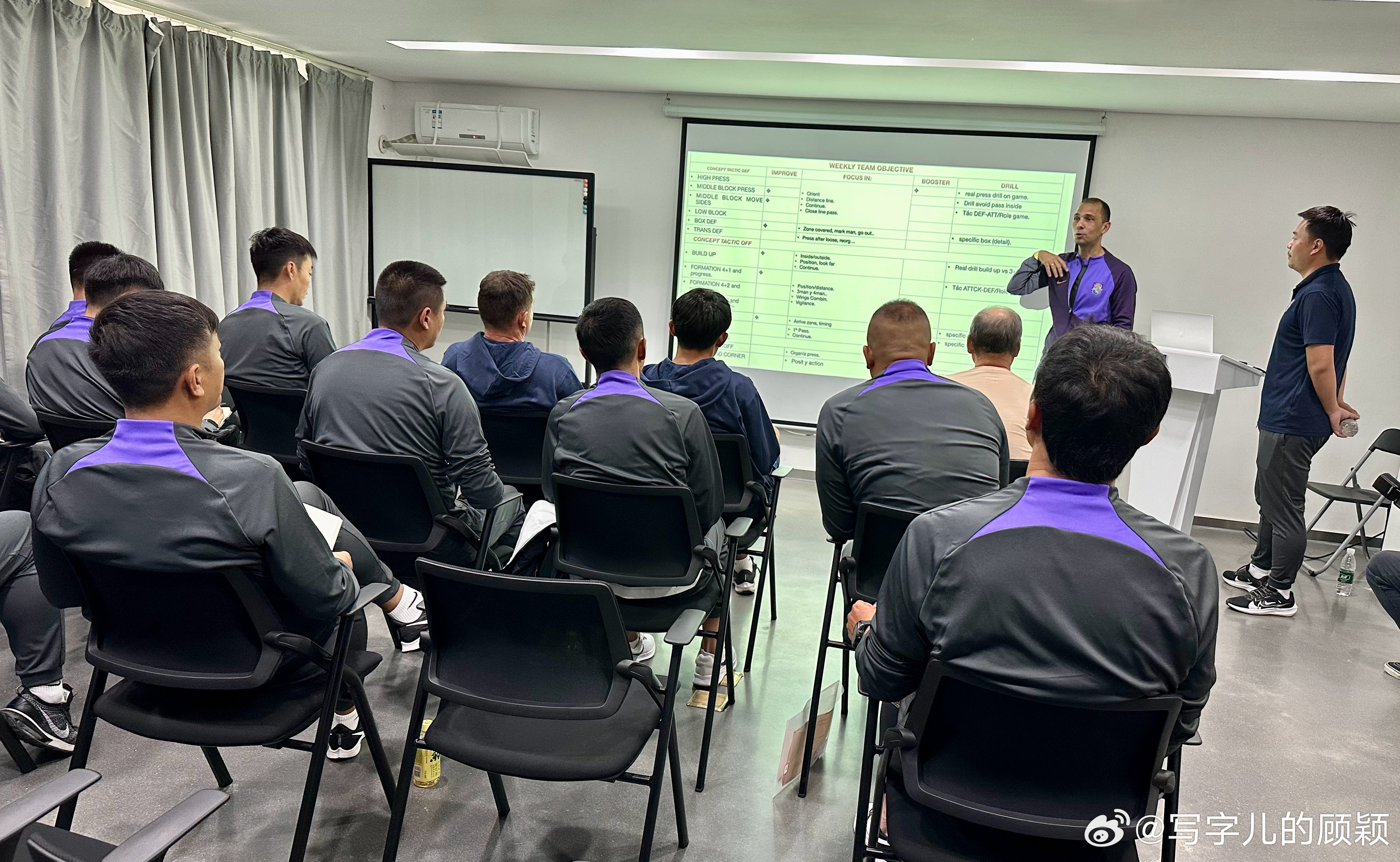 据天津记者顾颖消息,今天上午津门虎助教埃斯特乌给梯队教练上了业务交流课。