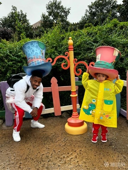 享受假期时光,马纳法一家三口在上海迪士尼游玩