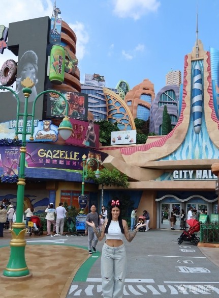 上海申花队外援马纳法的妻子杰茜卡更新社交媒体动态:一家三口在上海迪士尼乐园游玩,享受轻松愉快的假期时光。