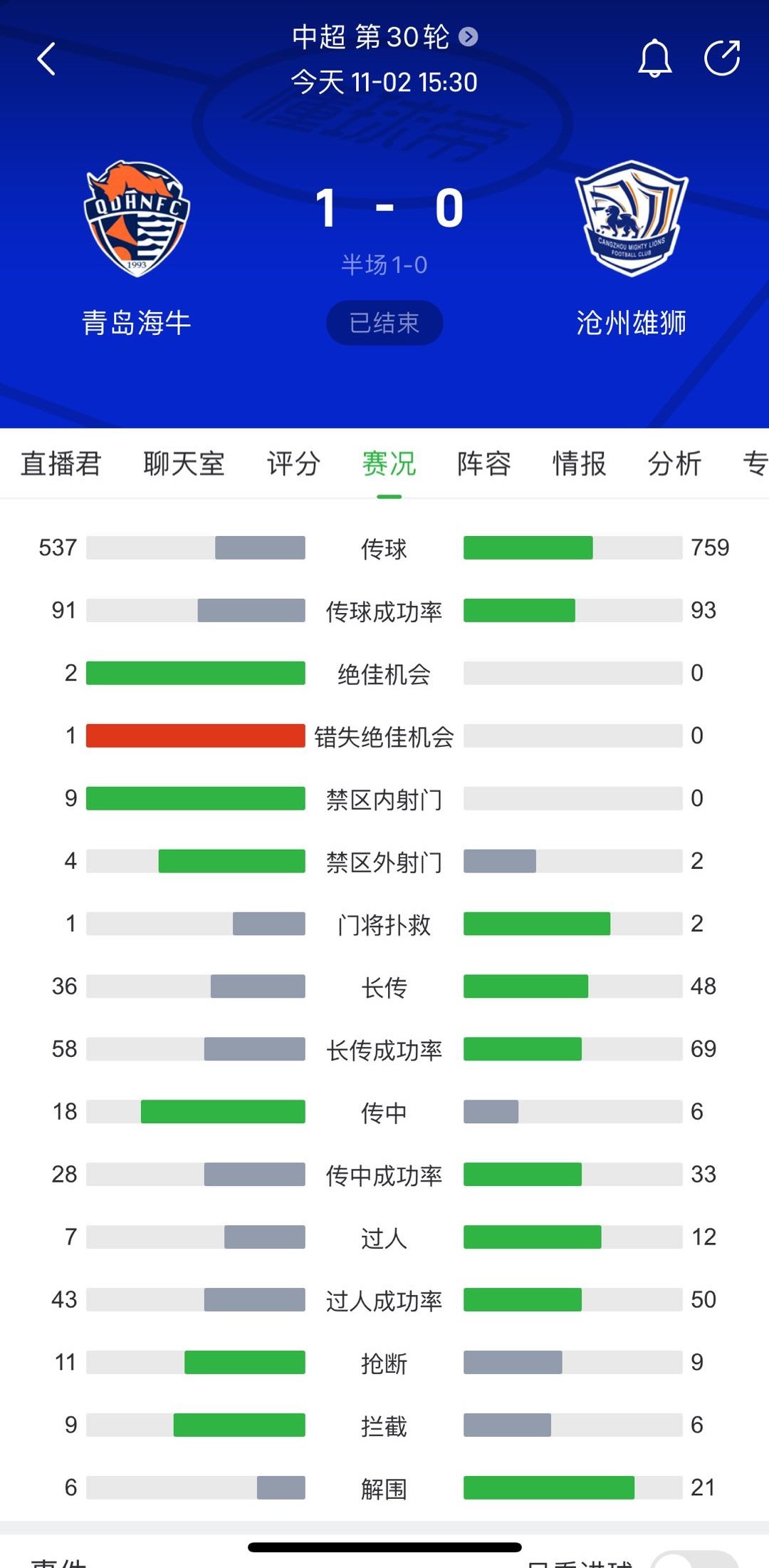 两队近1300脚传球,海牛vs沧州现场有球迷睡着了