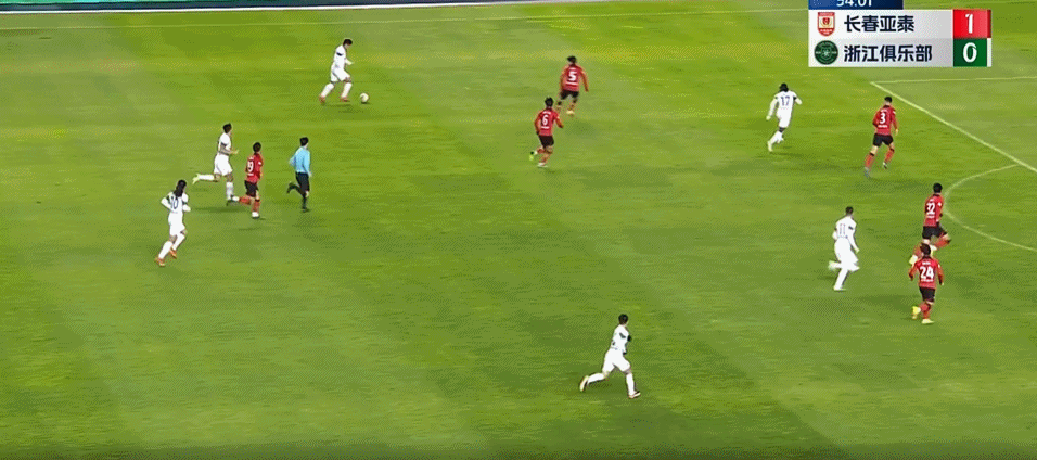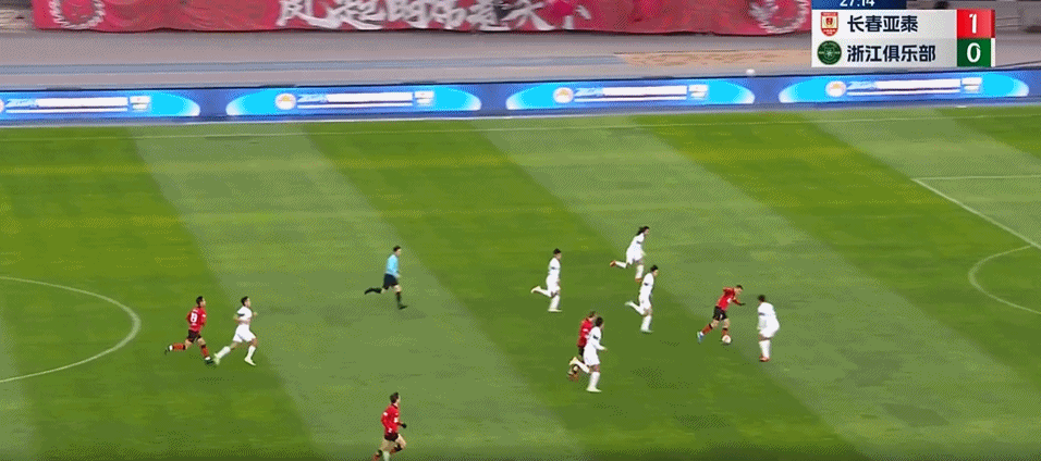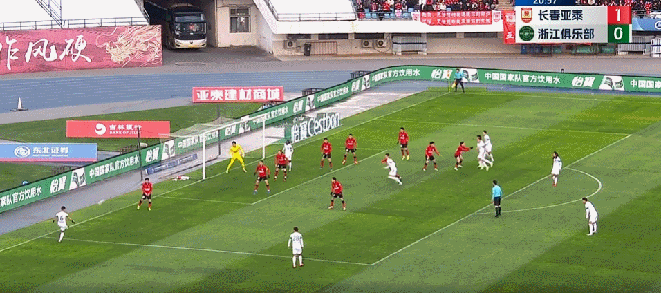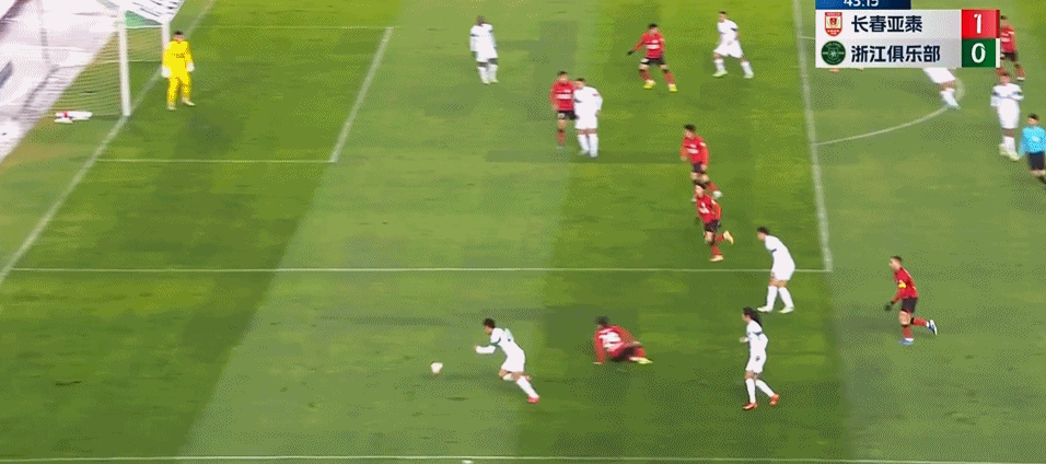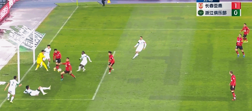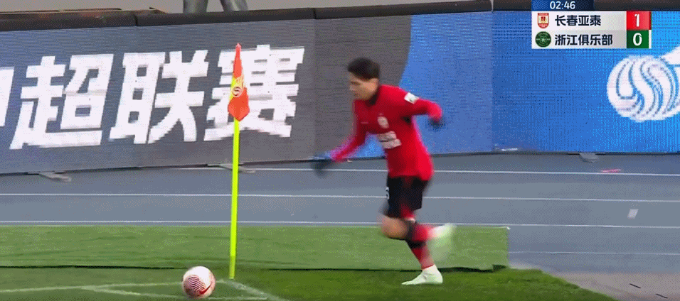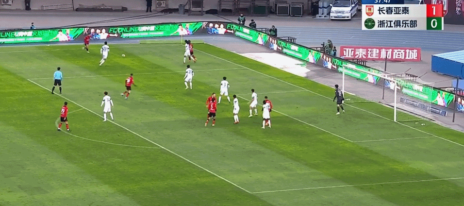 第38分钟,亚泰队左路传中,皮球直接飞出底线