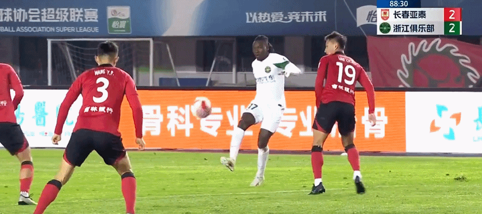 第88分钟,弗兰克禁区右侧兜射破门!浙江1-2