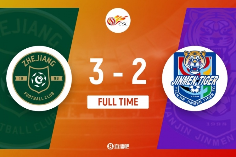 伤停补时10分钟。全场比赛结束,浙江3-2天津津门虎。