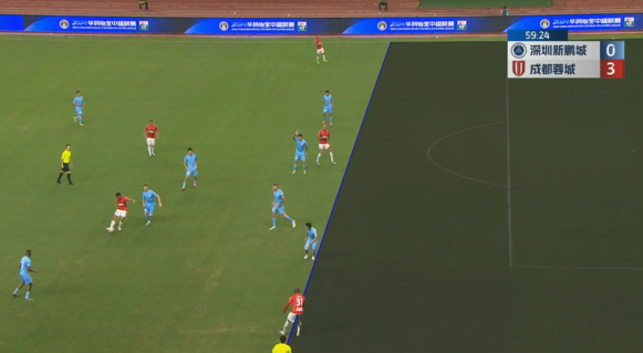 第35分钟,蓉城门将蹇韬出击踢疵,送给新鹏城角球。↓