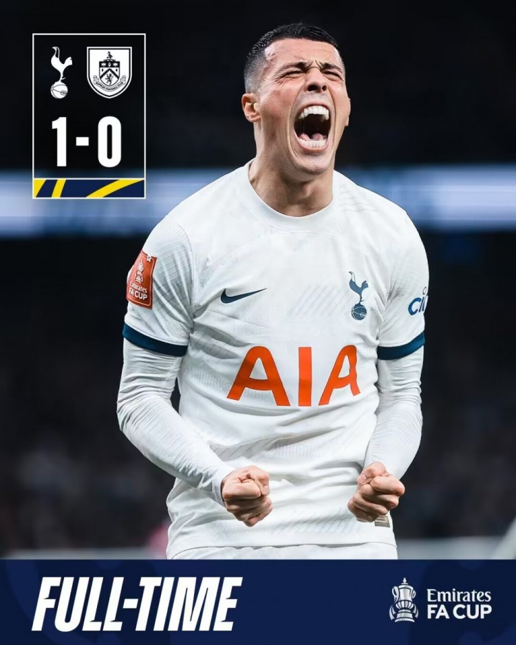 1月6日讯 北京时间1月6日凌晨4时,足总杯第3轮,热刺主场迎战伯恩利。上半场双方均无建树。热刺半场0-0战平伯恩利。下半场,波罗轰进一粒世界波,打进全场唯一进球。最终热刺主场1-0击败伯恩利,晋级足总杯第4轮。