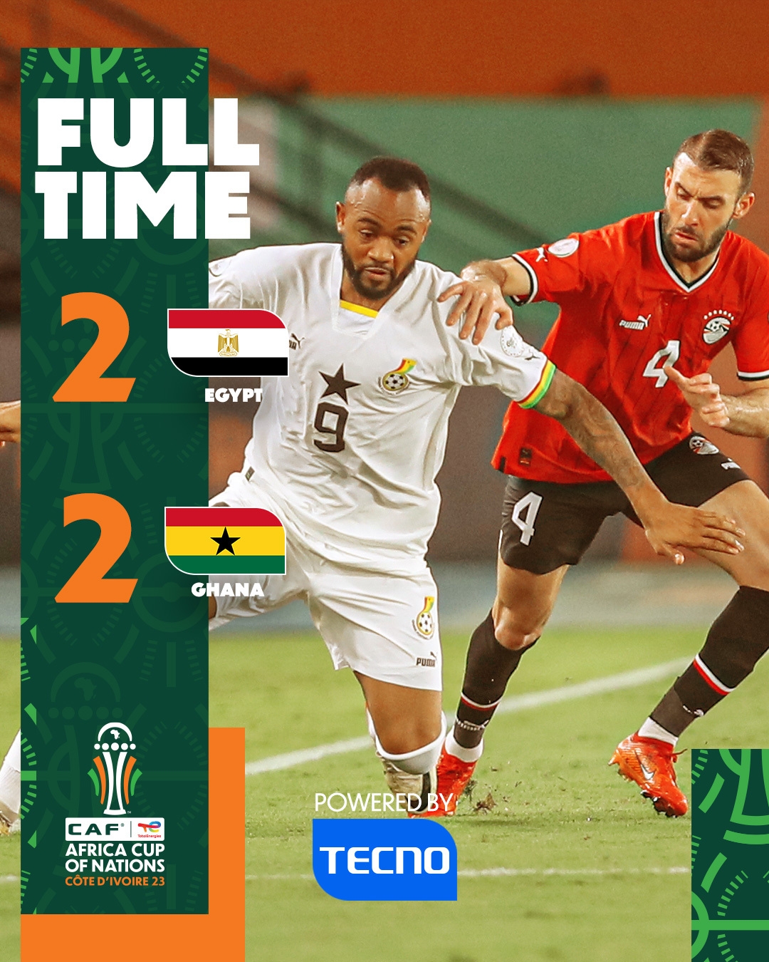 下半场补时7分钟,埃及2-2加纳。