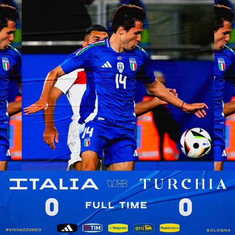 全场比赛结束,最终意大利0-0土耳其。