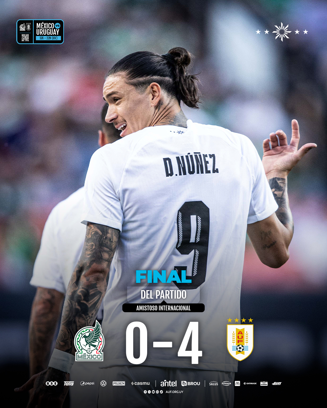 努涅斯戴帽!佩利斯特里传射,乌拉圭热身赛4-0大胜墨西哥