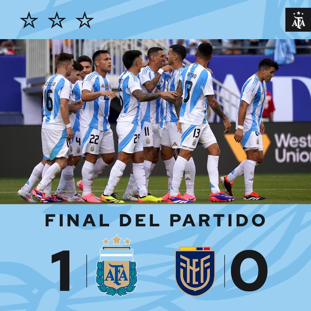 6月10日讯 北京时间6月10日早7时整,2024年足球友谊赛展开角逐,阿根廷对阵厄瓜多尔。上半场迪马利亚打破僵局+任意球中框,罗梅罗助攻,下半场梅西56分钟替补登场,冈萨雷斯失良机。最终阿根廷1-0战胜厄瓜多尔,阿根廷下场友谊赛将迎战危地马拉。