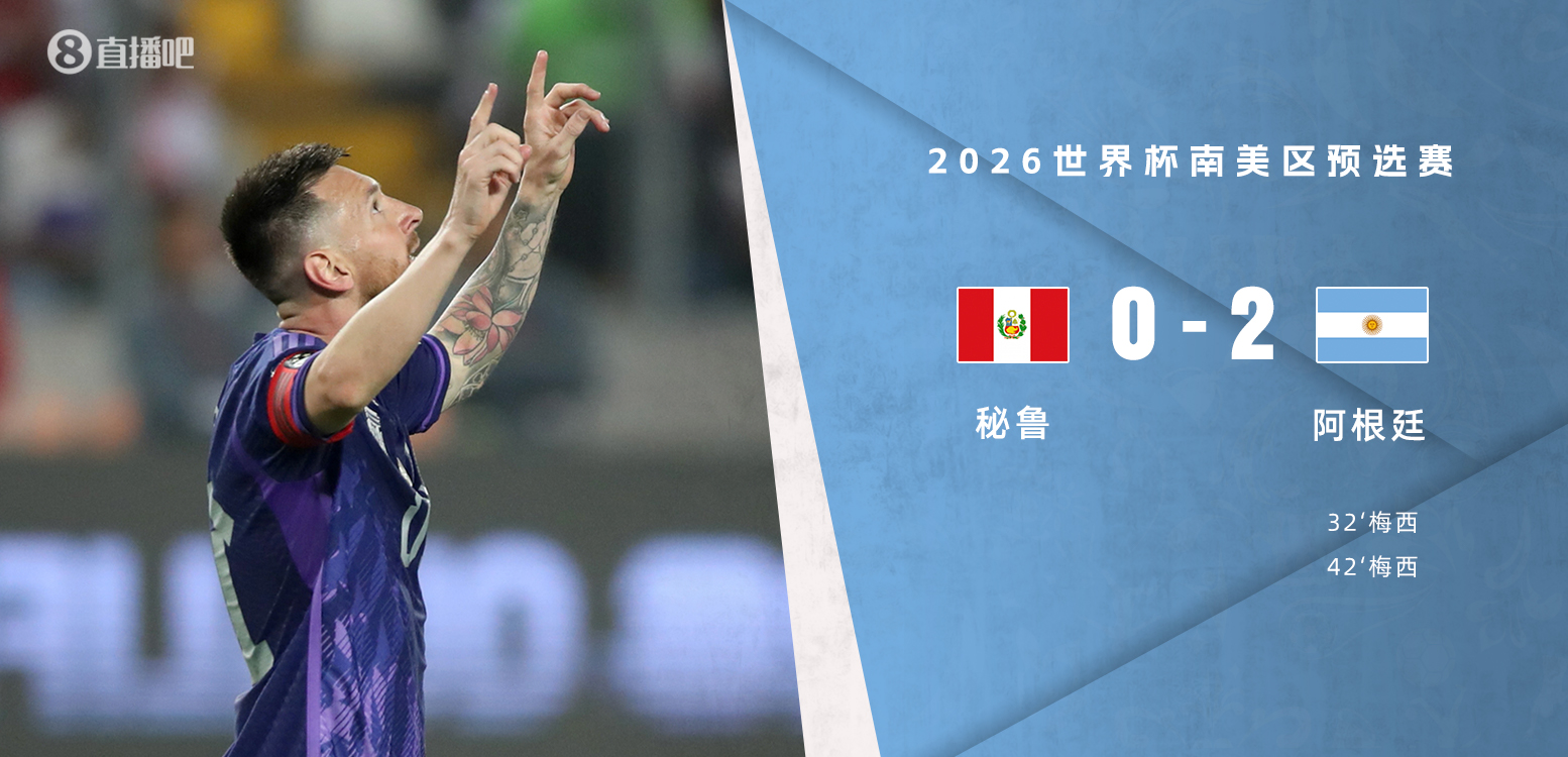 下半场伤停补时4分钟,全场比赛结束,阿根廷2-0秘鲁。