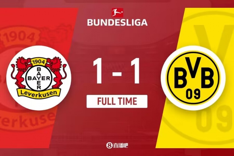 德甲-勒沃库森1-1多特终结14连胜 药厂先赛一场领先拜仁3分