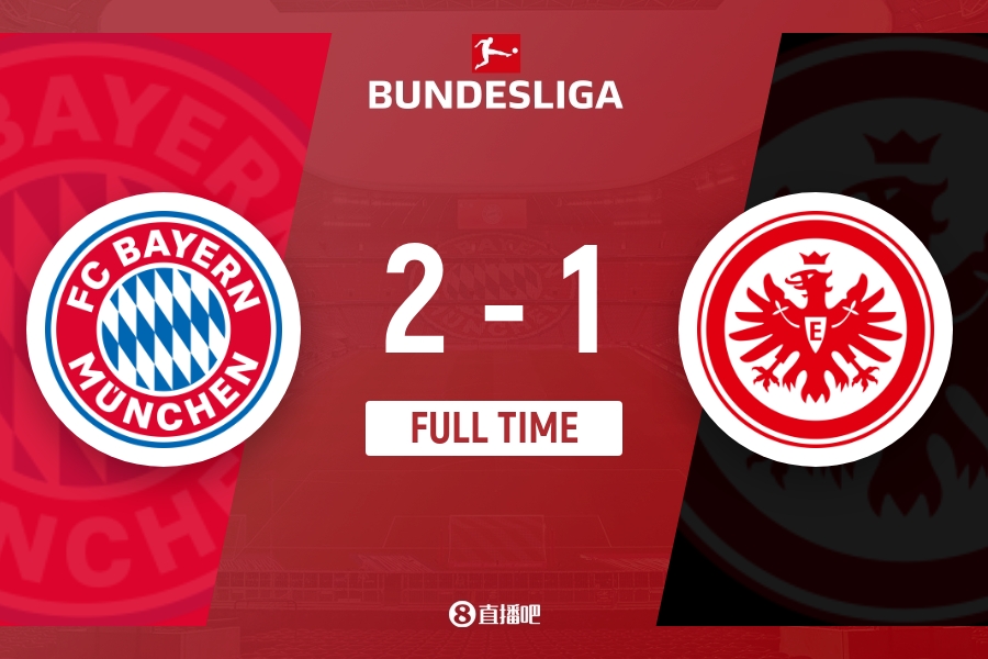 全场比赛结束,拜仁2-1击败法兰克福,继续位列积分榜第二位。