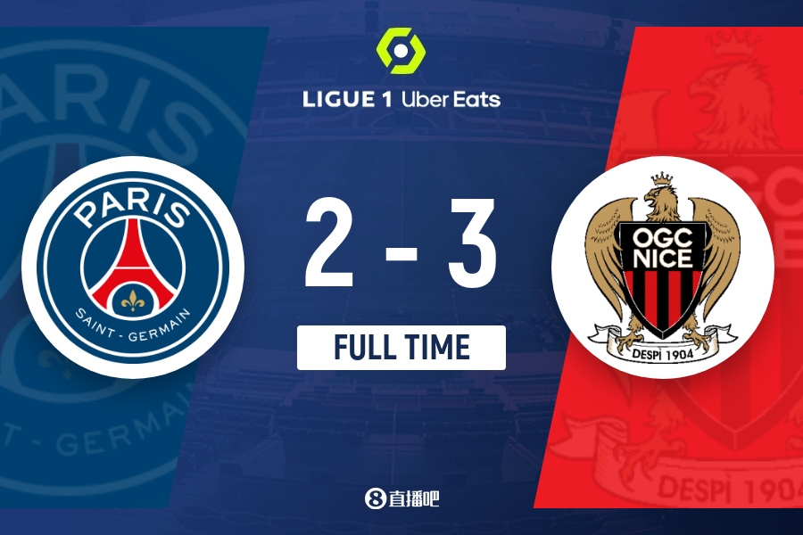 全场比赛结束,最终巴黎2-3尼斯。