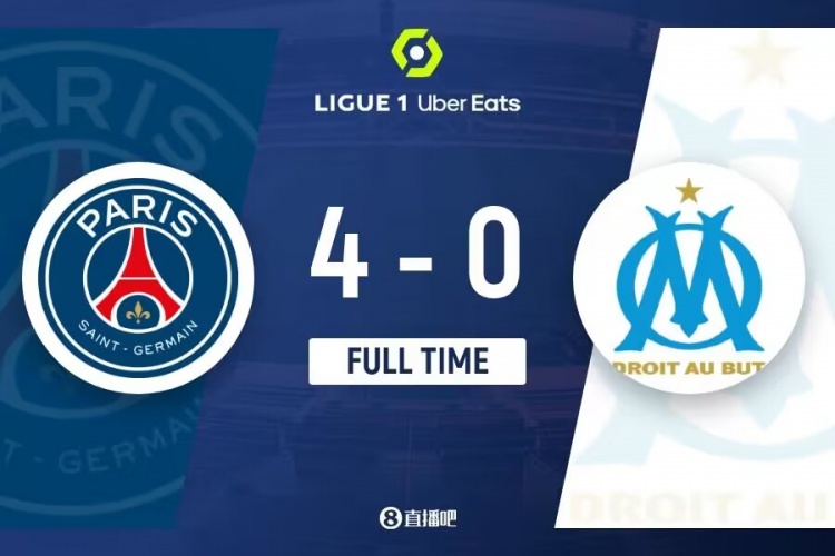 下半场伤停补时1分钟,全场比赛结束,最终巴黎4-0马赛。