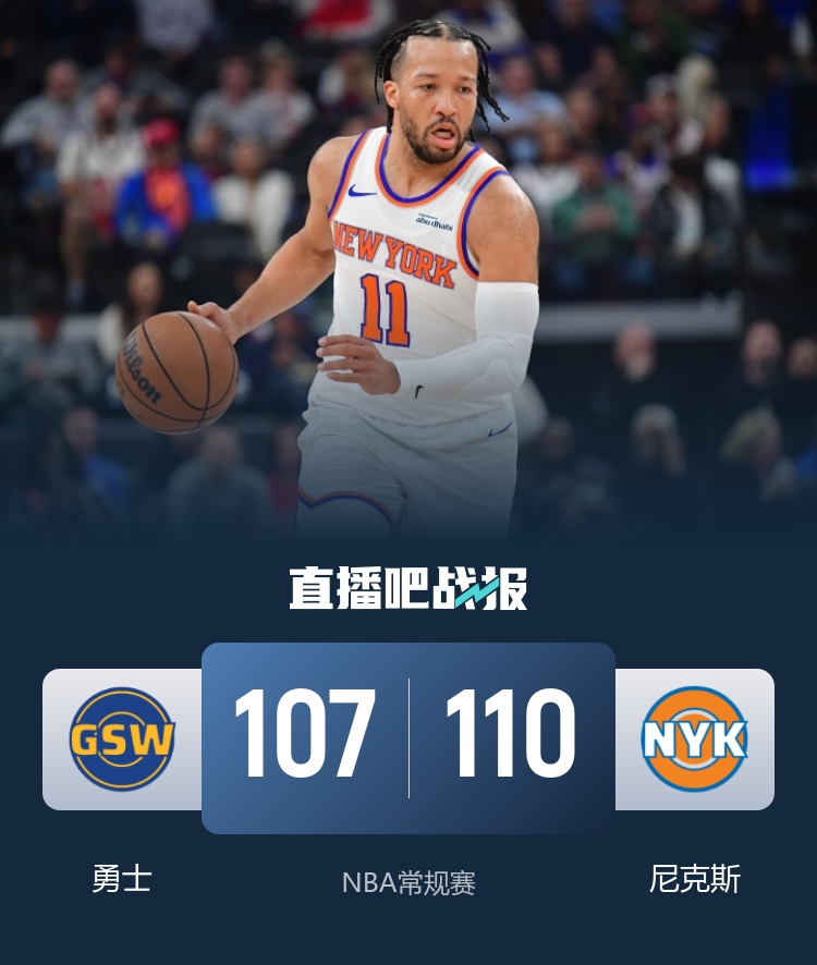 🏀残阵勇士被尼克斯21分逆转遭5连败 波杰姆25+5+6 布伦森30+9
